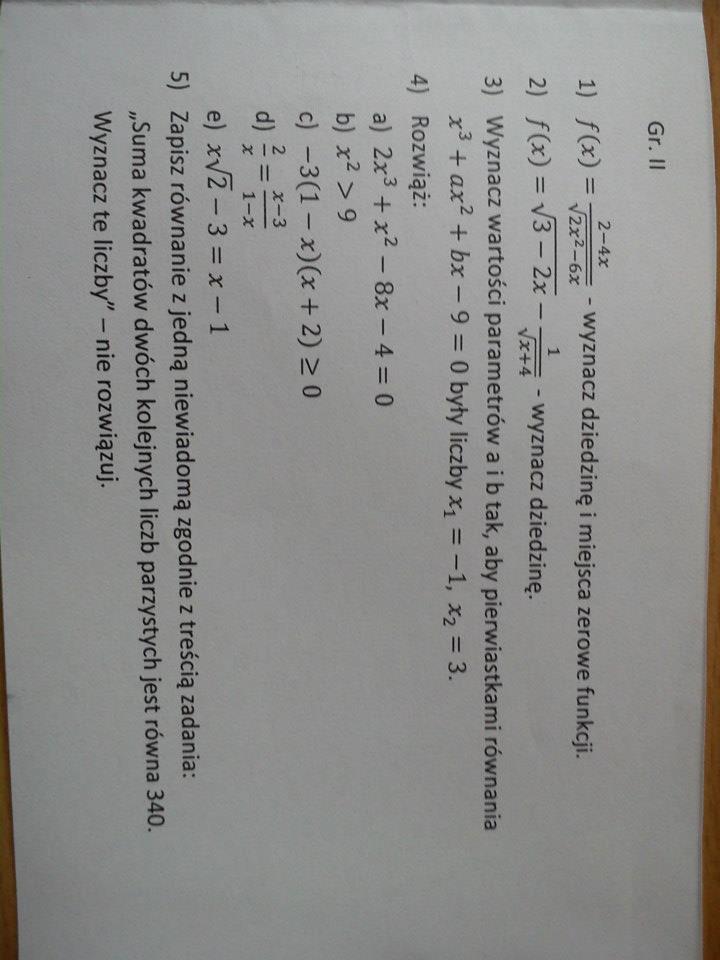 e) przedzial w ktorym funkcja przyjmuje wartosci dodatnie