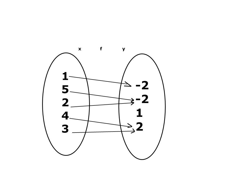 Dane są zbiory X={1,2,3,4,5} i Y={-2,-1,1,2} oraz funkcja f przedstawiona za pomocą grafu.