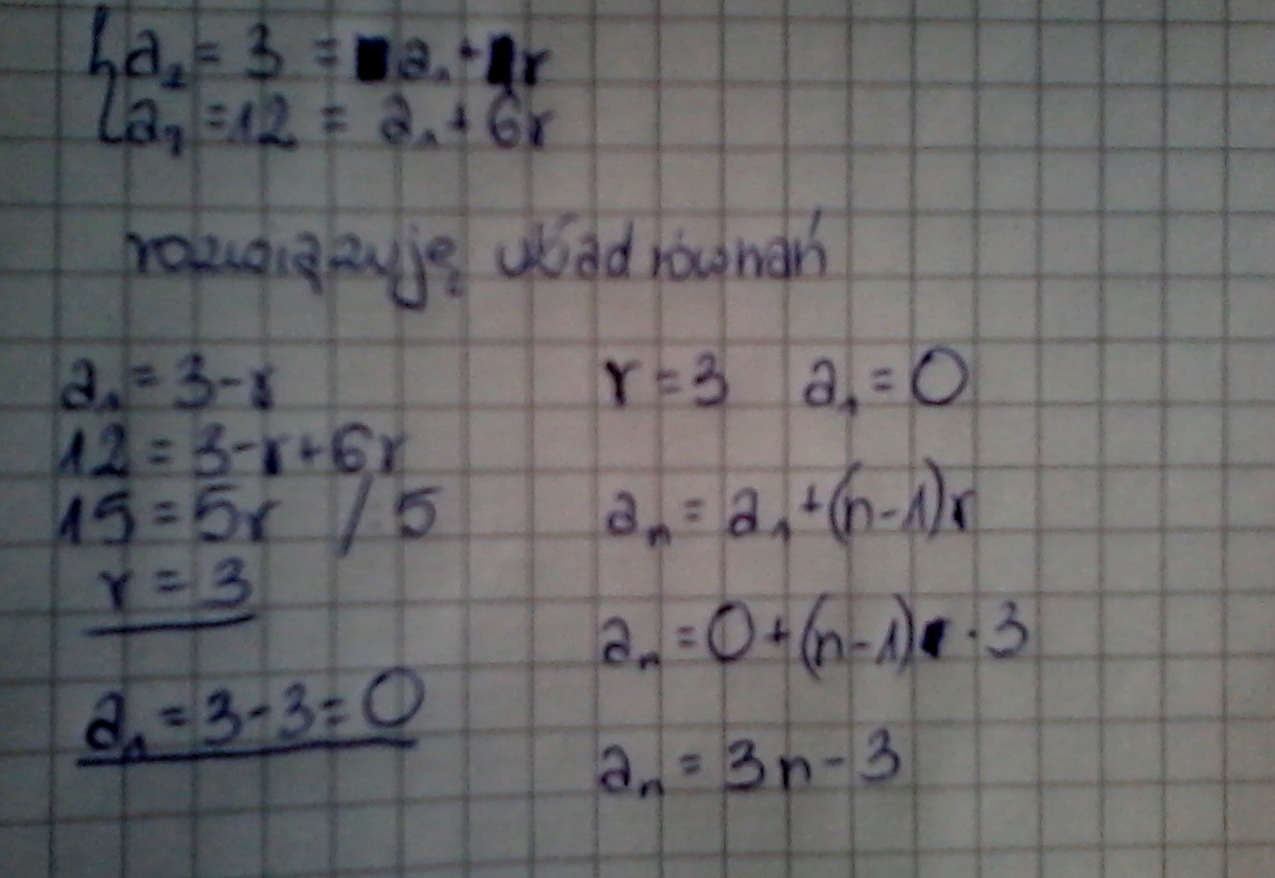 Drugi wyraz ciągu arytmetycznego jest równy (3), a wyraz siódmy jest równy 12.