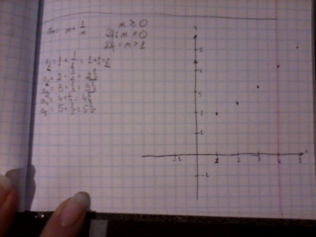 Zad.1 Narysuj wykres ciągu liczbowego, danego wzorem an = n+1/n (pamiętając, że dziedziną są tylko liczby naturalne.)