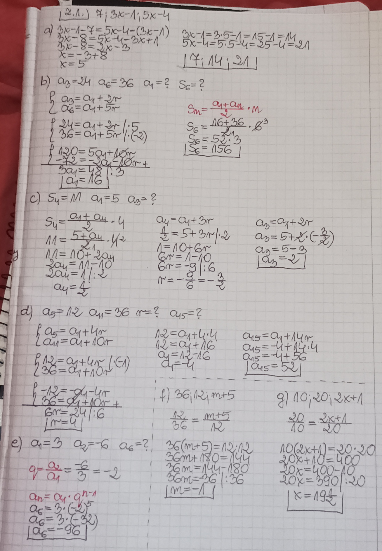 1. a) Dobierz x tak, aby ciąg (7, 3x-1,5x-4) był trzywyrazowym ciągiem arytmetycznym.
