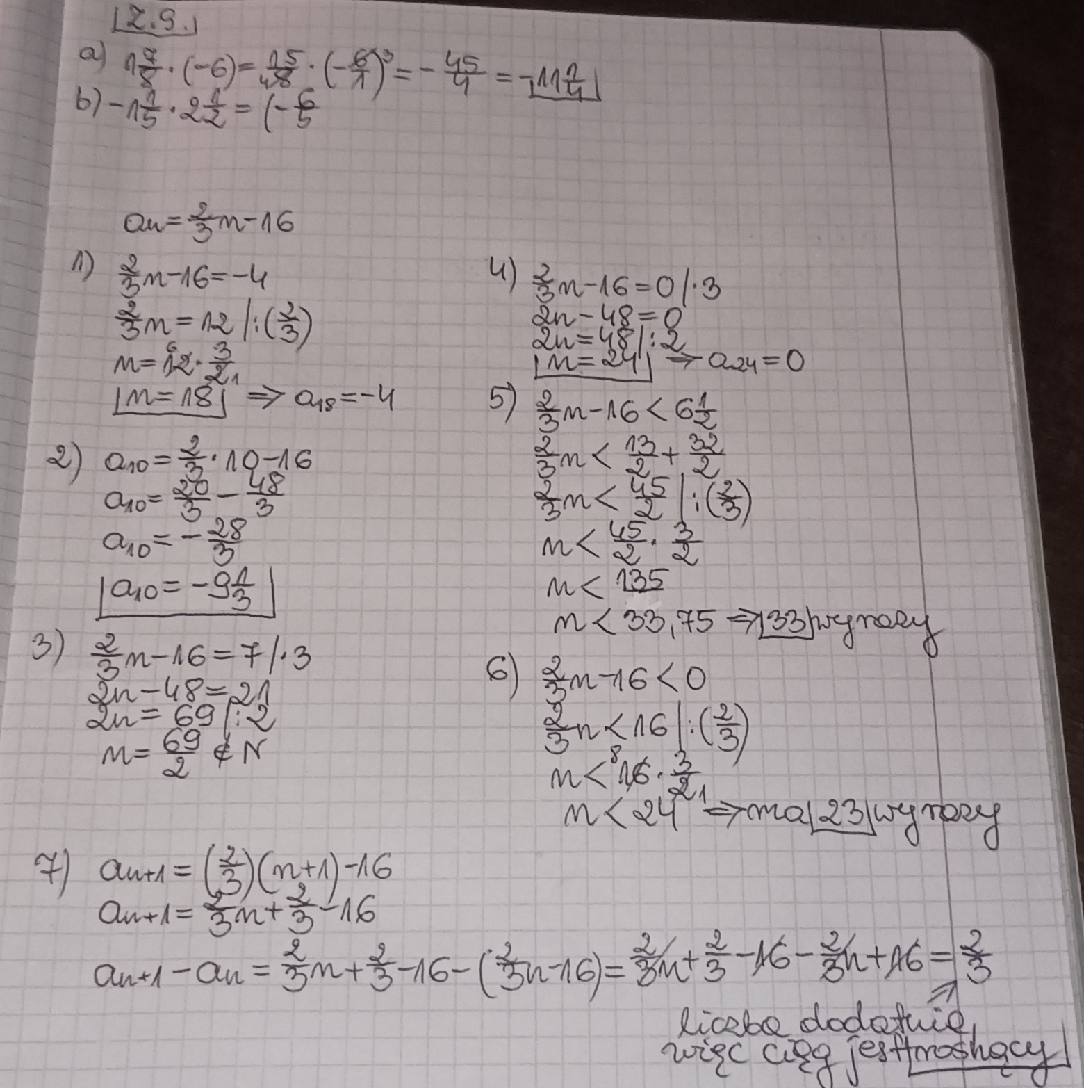Dany jest ciąg liczbowy o wyrazie ogólnym an=2/3n-16