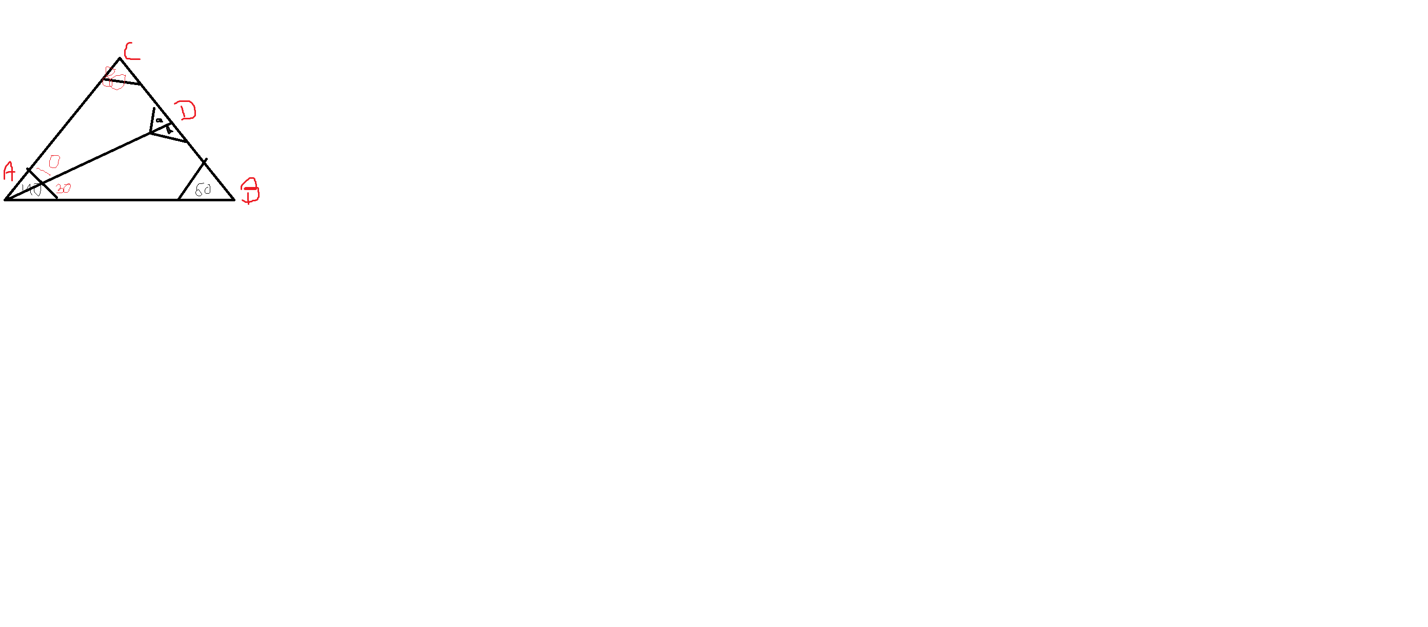 W trojkacie ABC dane sa |katCAB| = 40stopni, |katABC| = 60stopni. Punkt O jest srodkiem okregu wpisanego w ten trojkat. Prosta AO przecina bok BC w punkcie D. Jaka miare ma kat |ADC| ?