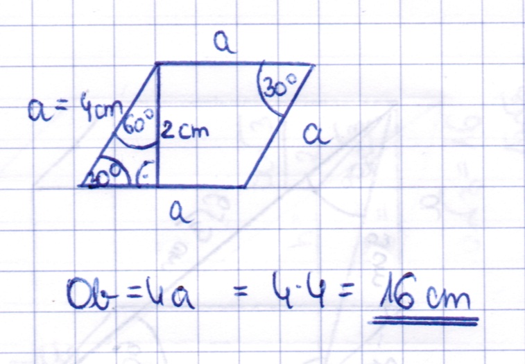 , a wysokość ma 2 cm.Oblicz obwód rombu.