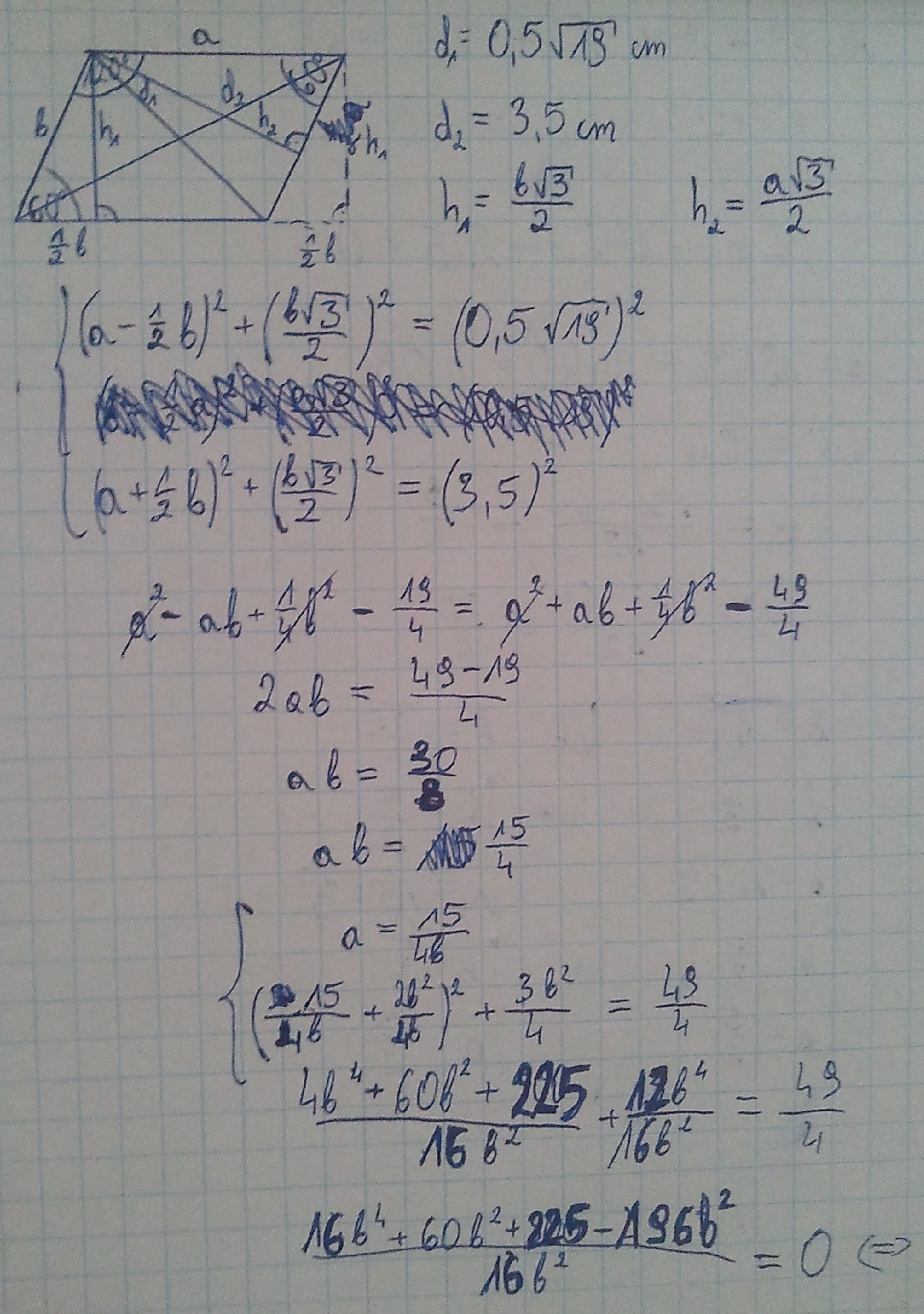 , przekątne tego równoległoboku mają długości 3,5 cm i 0,5