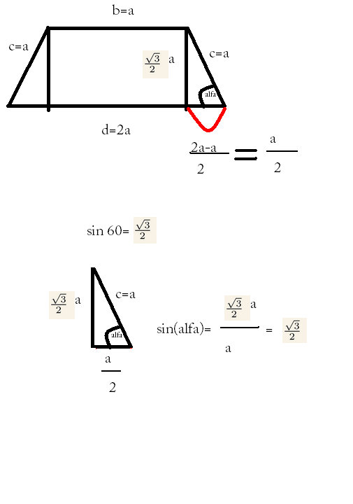 wykaż ze jesli trapez równoramienny ma 3 boki rownej dlugosci a czwarty jest 2 razy dłózszy to kat ostry trapezu ma miare 60 stopni