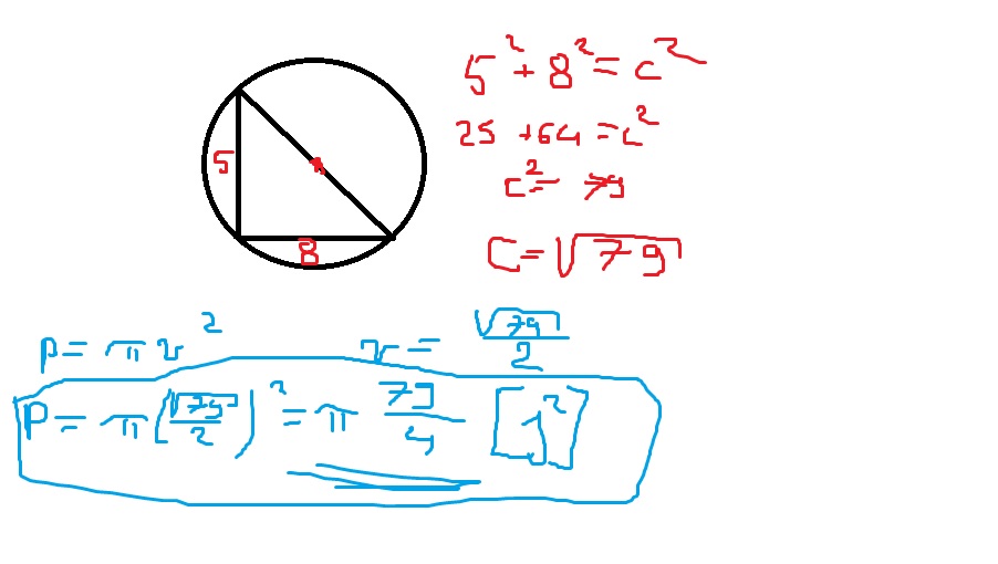 Na trójkącie prostokątnym o przyprostokątnych 5 i 8 opisano okrąg. Oblicz pole powierzchni tego okręgu.