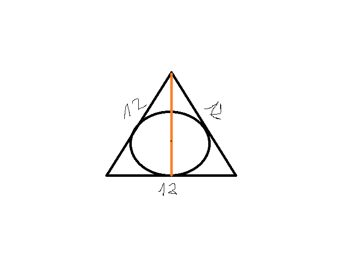 32. Oblicz promień i pole koła wpisanego w trójkąt równoboczny o boku 12 cm.