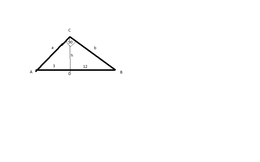 *korzystamy z twierdzenia Pitagorasa c^2=a^2+b^2 ,c^2=(3+12)^2=15^2 tworząc układ równań