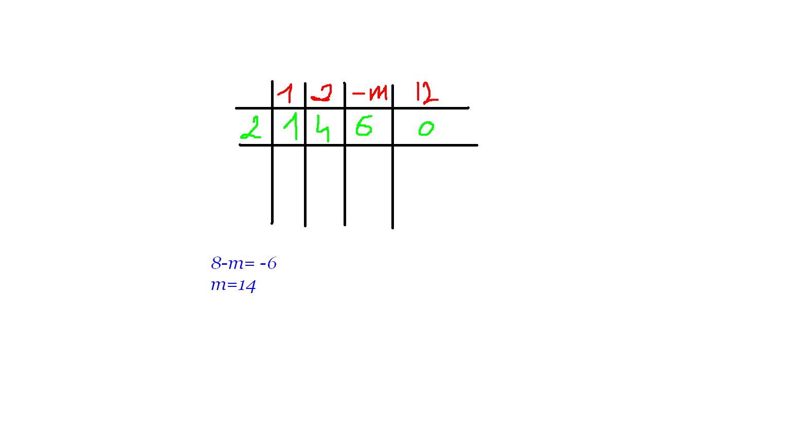 2^3 + 2*2^2 - m*2 + 12 = 0 czyli