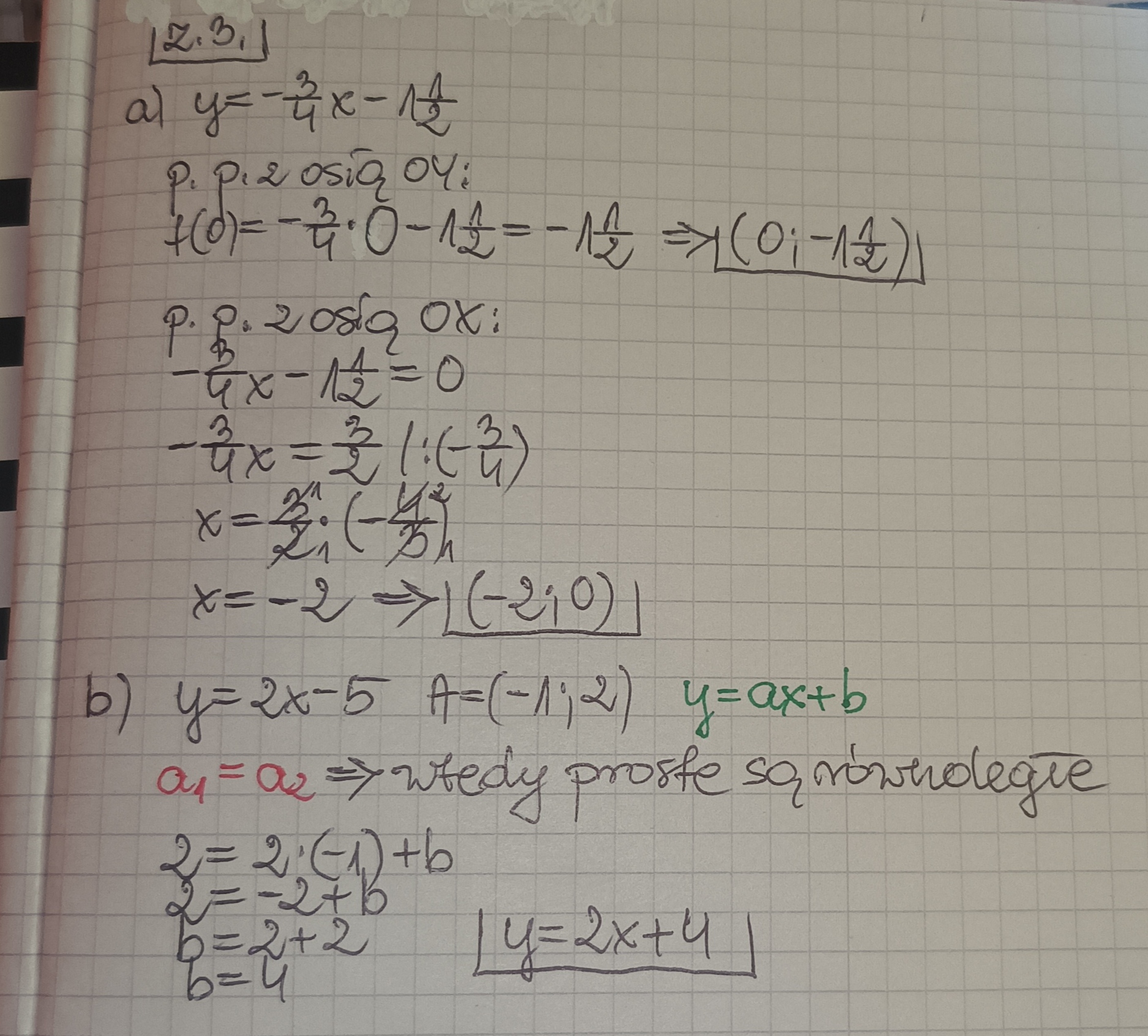 b) Znajdź wzór funkcji liniowej, której wykres jest równoległy do wykresu funkcji y = 2x - 5 i przechodzi przez punkt A = (-1,2).