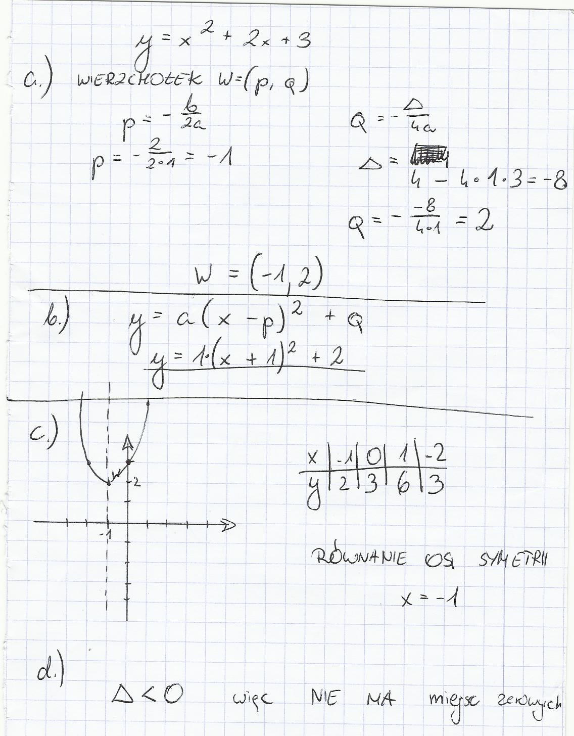 c)naszkicuj wykres funkcji i napisz równanie osi symetrii wykresu