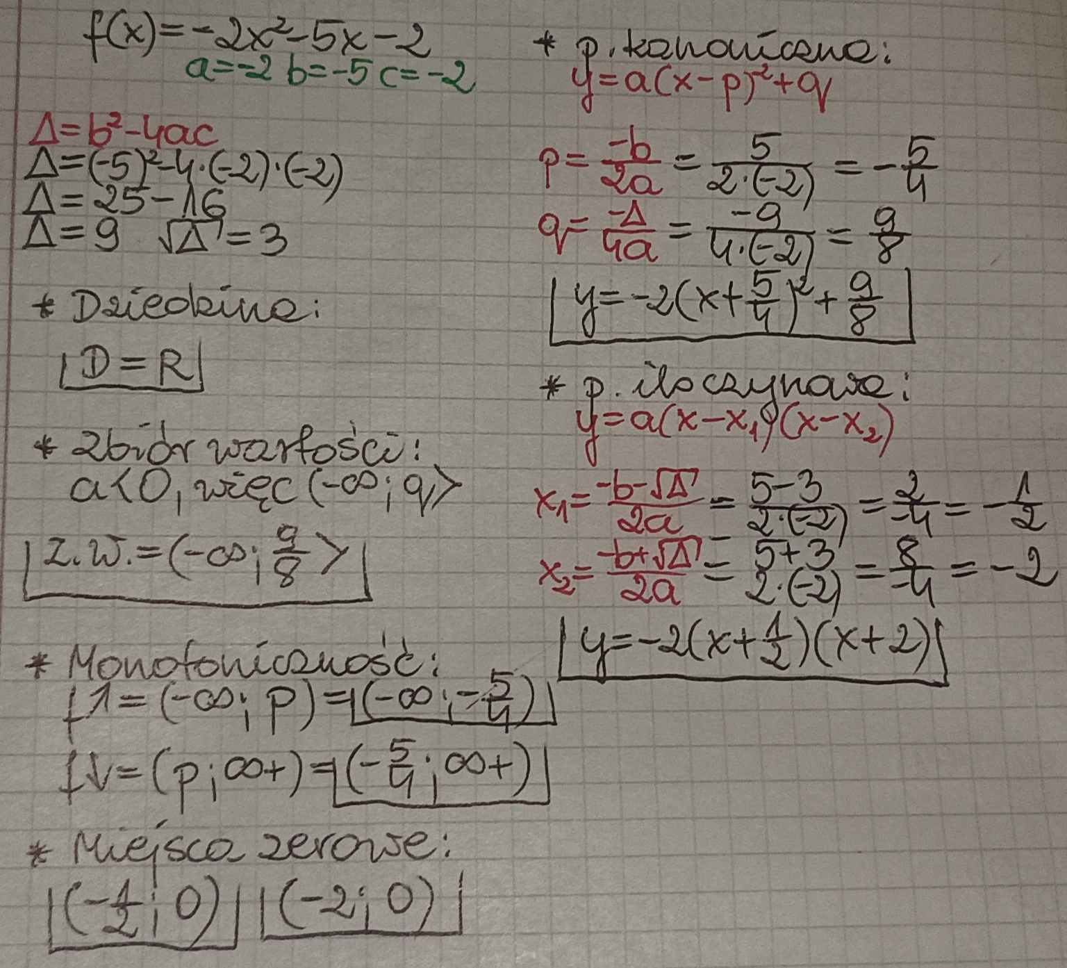 Podaj wzór funkcji kwadratowej w postaci kanonicznej i iloczynowej o ile istnieje, gdy :