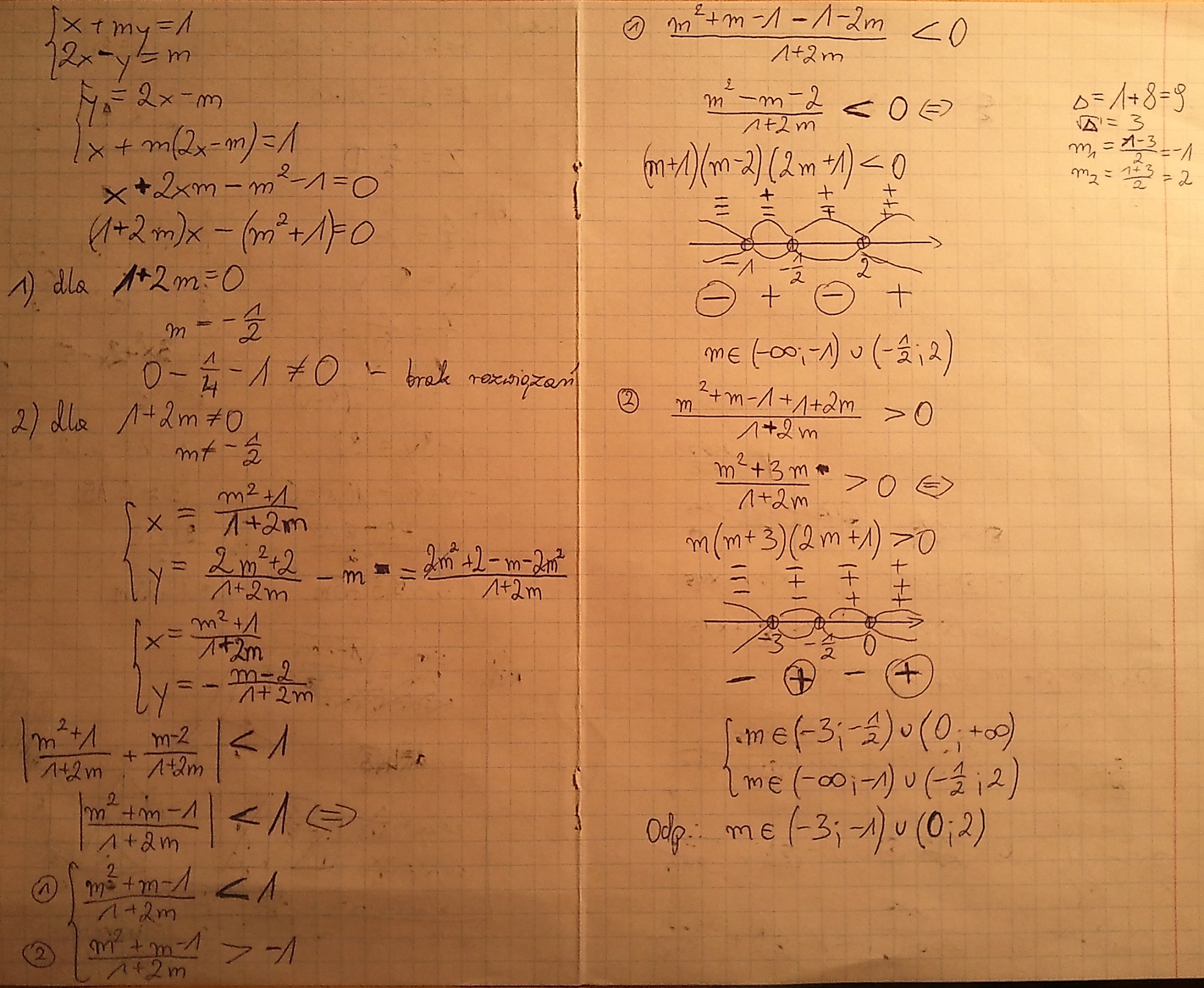 Dla jakich wartości parametru m rozwiązaniem układu równań