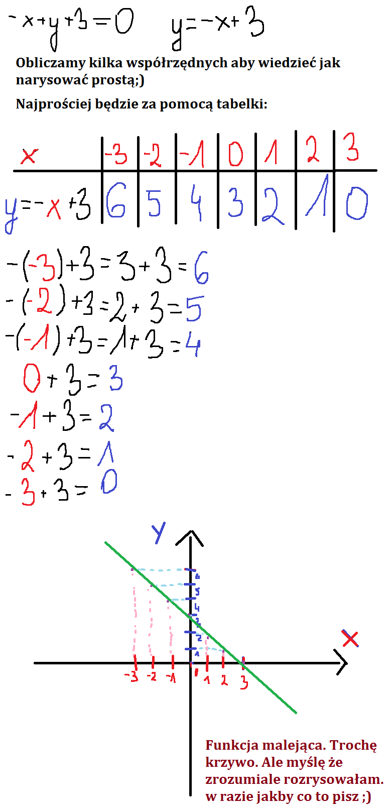 zad 15. narysuj prosta o podanym rownaniu -x+y+3=0