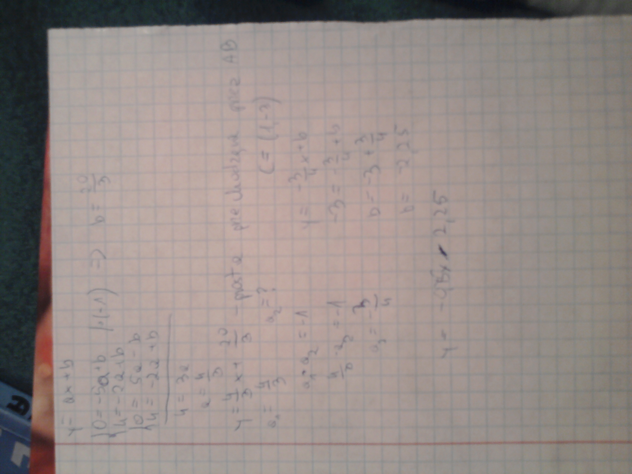 Punkty A=(-5,0) B=(-2,4) C=(1,-3) są wierzchołkami trójkąta ABC. Napisz równanie prostej zawierającą wysokość, która przechodzi przez punkt C.