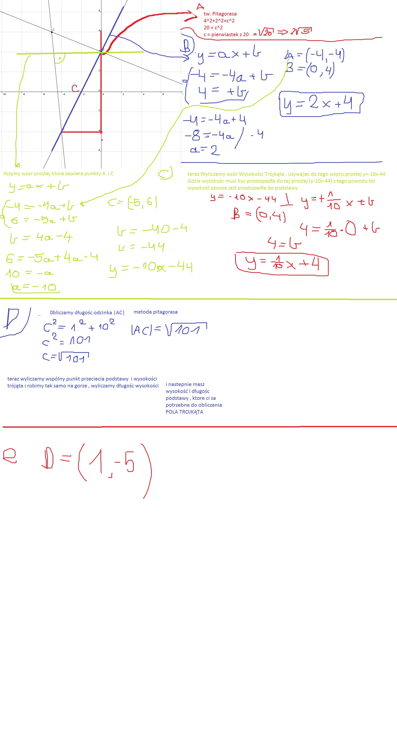 d) oblicz pole trójkąta