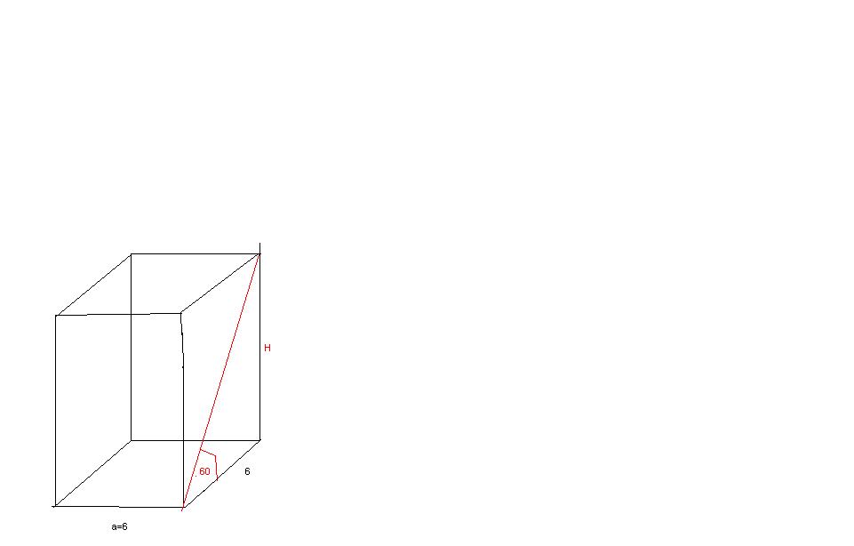 *kat 60 zawarty miedzy krawędzia podstawy a przekatna ściany bocznej