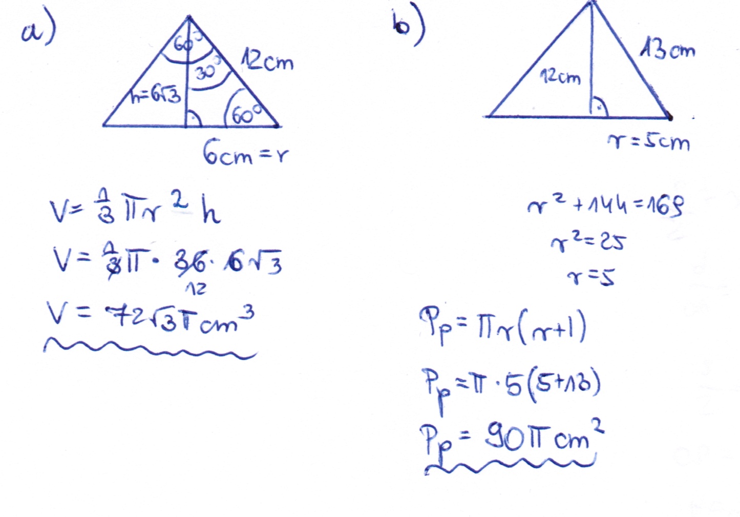b) Oblicz pole powierzchni tego stożka, gdy L=13 cm,a jego wysokość ma długość 12 cm.