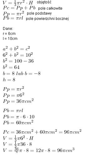 podstawiamy do wzoru na objętość stożka i obliczamy: