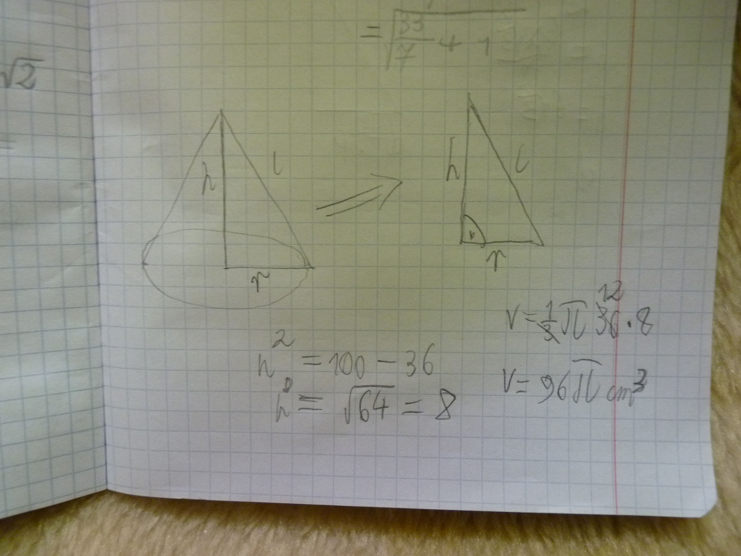 W drugim brakuje wysokości, weżniemy ją z równania na trójkąt pitagorejski.