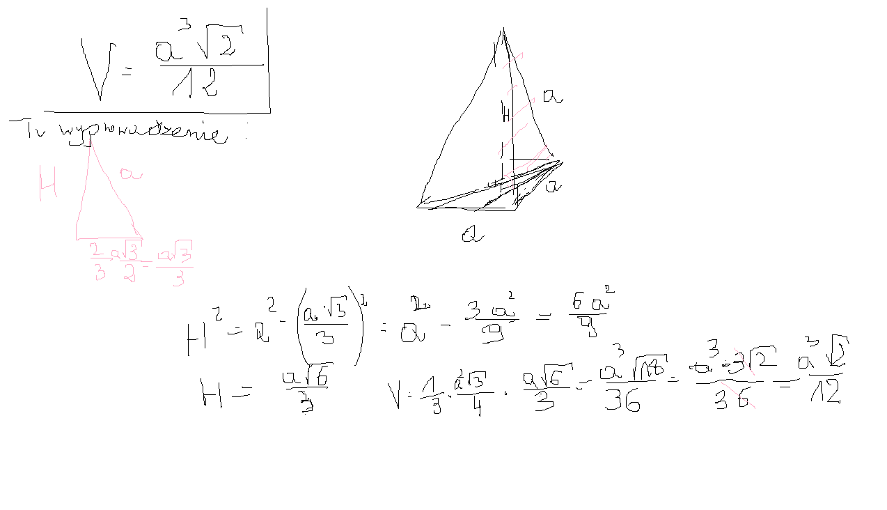 Jaką objetość ma czworoscian foremny o krawedzi rownej a?