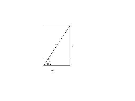 Przekątna przekroju osiowego walca o długości 12 cm jest nachylona do jego podstawy pod kątem 60 stopni.