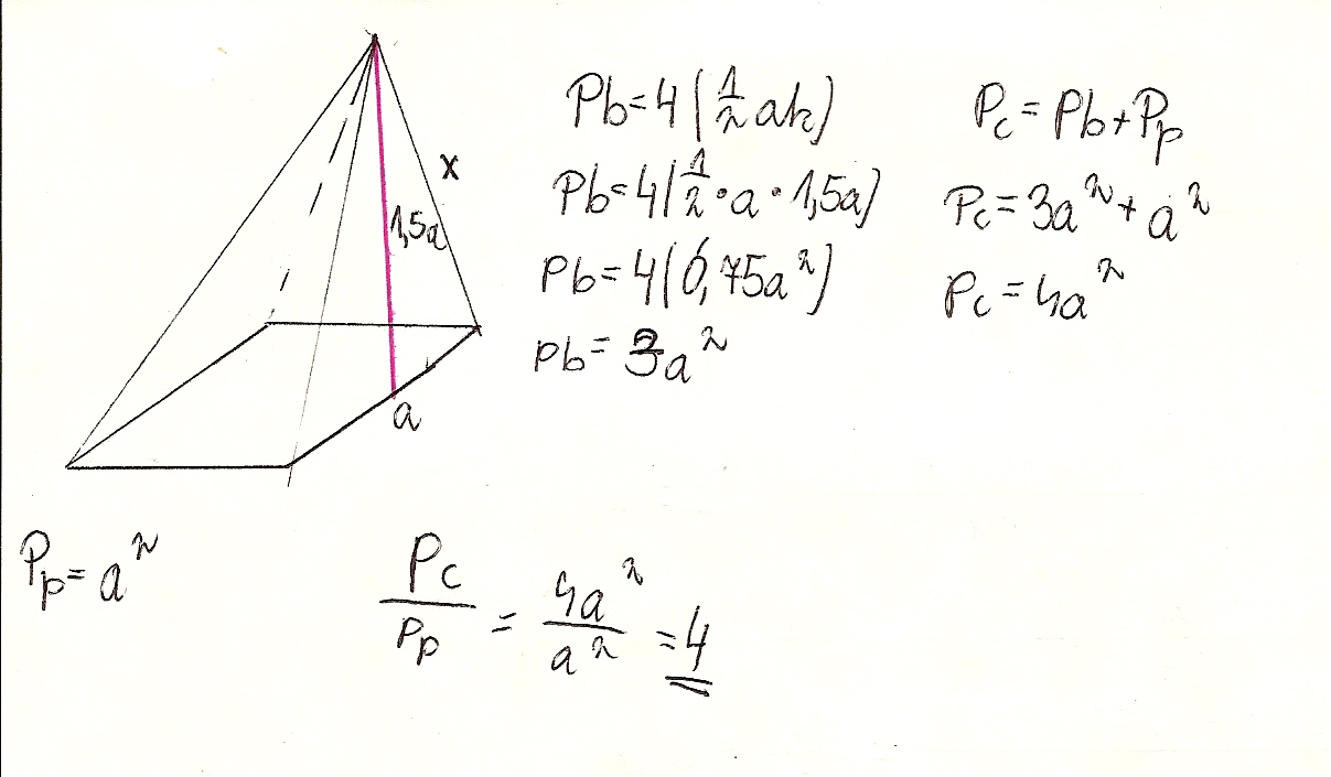 Wykaż, że pole powierzchni całkowitej ostrosłupa jest cztery razy większy od pola podstawy.