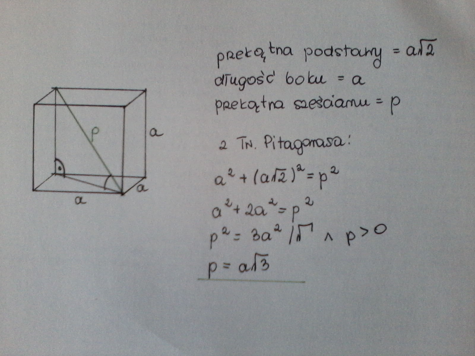 Wykaż, że długośc p przekatnej sześcianu o krawędzi a określona jest wzorem p=a 3 pierwiatki 3 pierwiatki