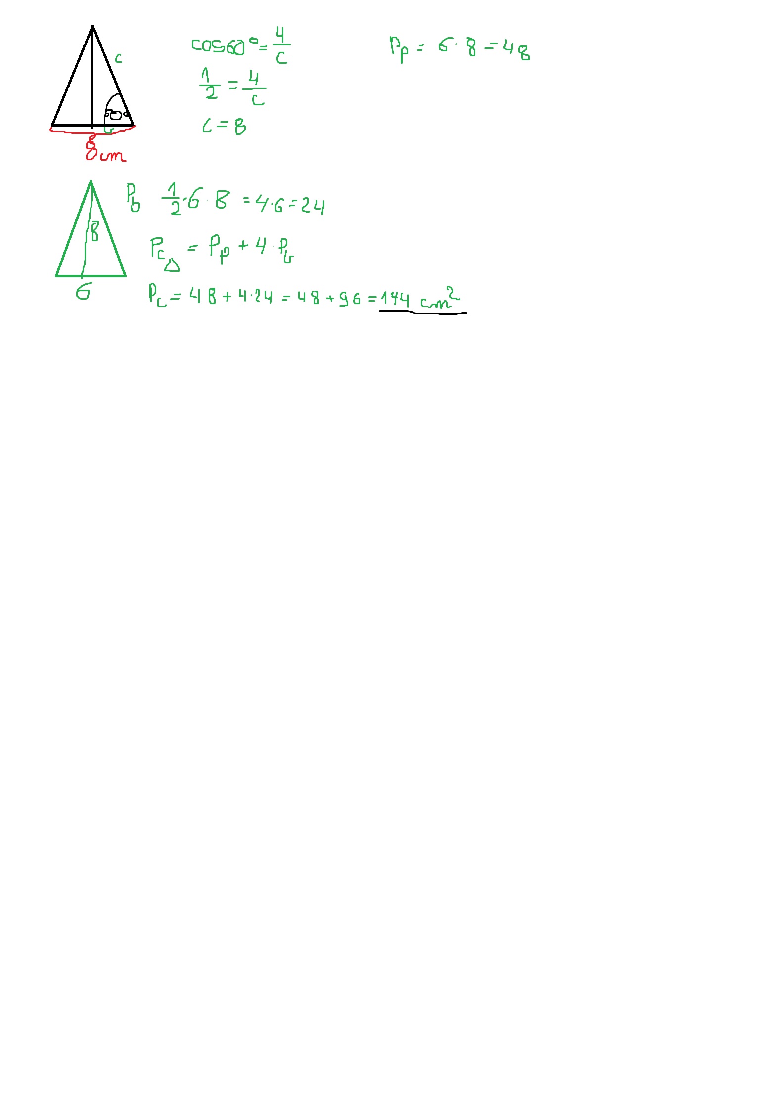 Podstawą ostrosłupa jest prostokąt o bokach 6 cm i 8 cm.Każda krawędz boczna jest nachylona do płaszczyzny podstawy pod kątem 60 stopni.Oblicz pole powierzchni ostrosłupa.