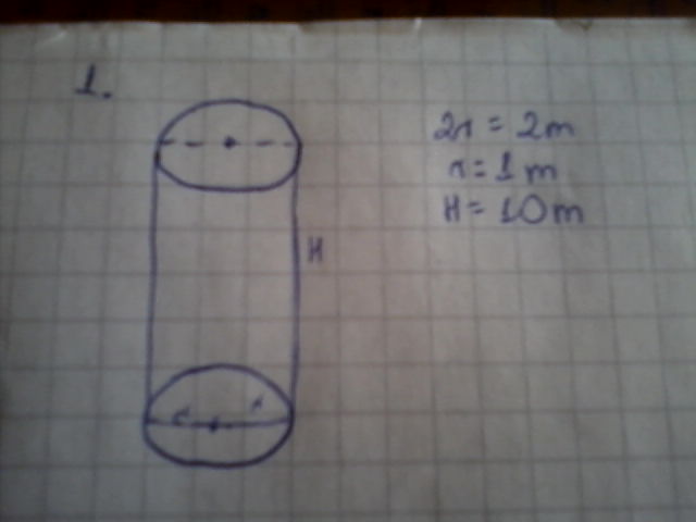 Dach dzwonnicy ma kształt walca pokrytego polsfera. Srednica podstawy tego walca jest rowna 2m,a wysokość dachu wynosi 10m.Oblicz,ile metrow kwadratowych blachy potrzeba na pokrycie dachu.Wynik zaokraglij do 0,1m kwadratowego.