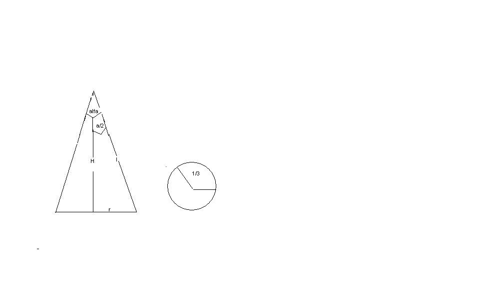 *sporządzamy przekrój osiowy stożka zaznaczajac na nim jego kat rozwarcia i nanosząc