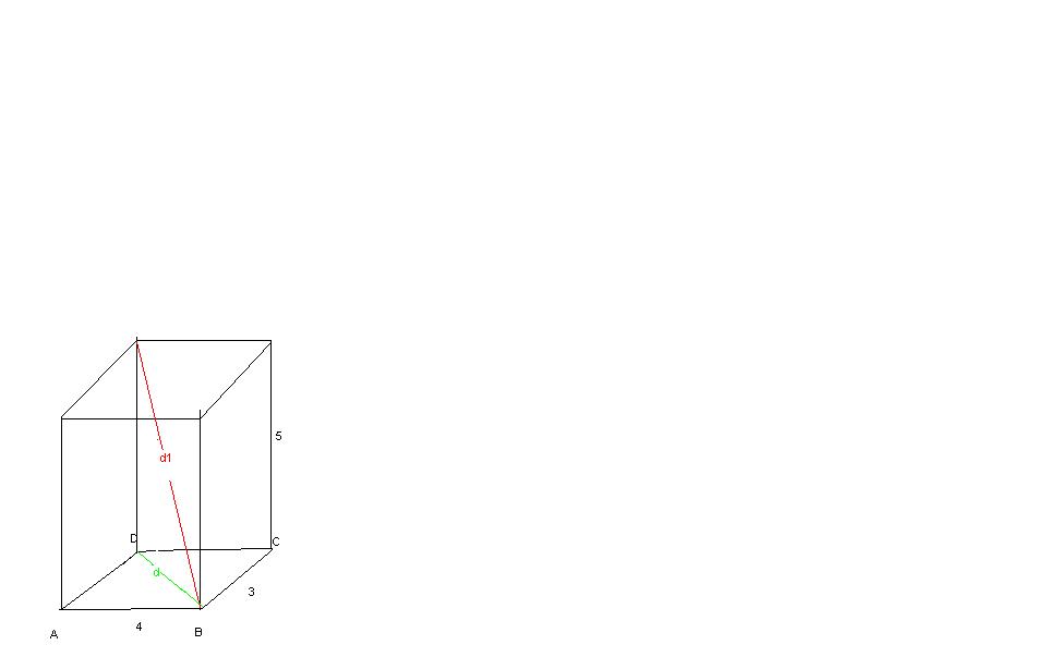 przekątna prostopadłościanu(Przy jej obliczaniu korzystamy z tw.Pitagorasa)