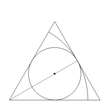 Zauważmy, że promień wycinka jest równy wysokości trójkąta równobocznego. A okrąg wpisany w wycinek jest przy okazji okręgiem wpisanym w trójkąt równoboczny, a więc jego promień jest równy jednej trzeciej wysokości. Stąd otrzymujemy: