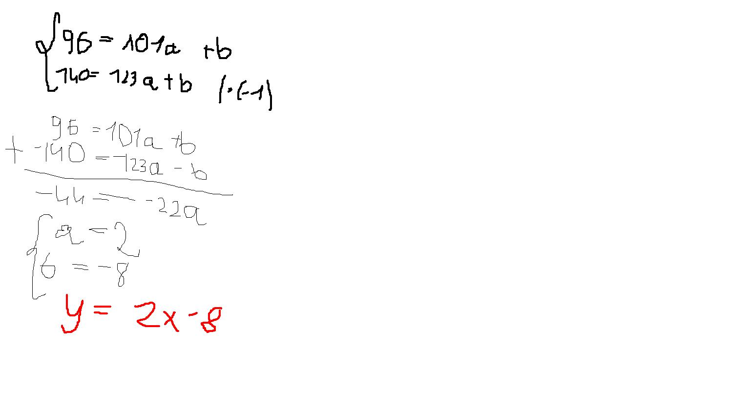 96=101a+b oraz 140=123a+b traktujemy to jako układ równań
