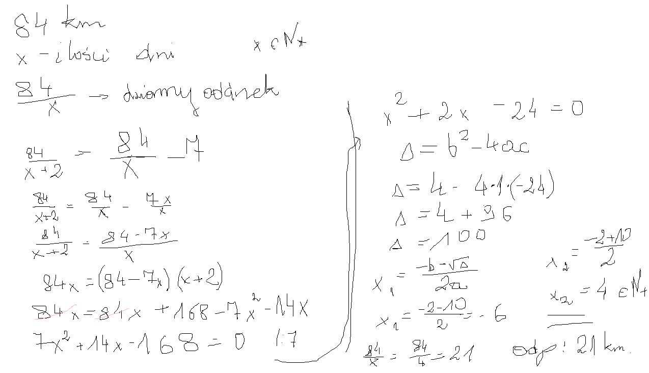 Odp. Dziennie przebywali 21 km.