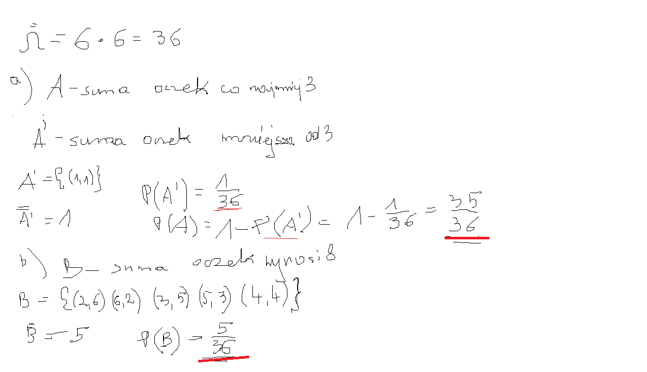 a) suma oczek wynosi co najmniej 3