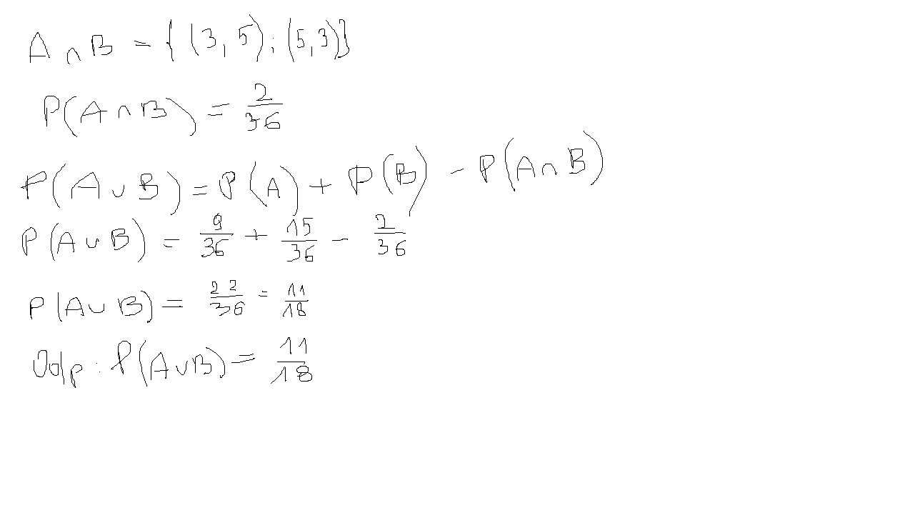B={(2,6), (3,5),(3,6),(4,4),(4,5), (4,6),(5,3),(5,4),(5,5),(5,6),(6,2),(6,3),(6,4),(6,5),(6,6)}