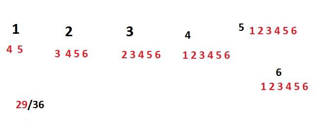 Prawdopodobieństwo wszystkich możliwości jest 6^1=36