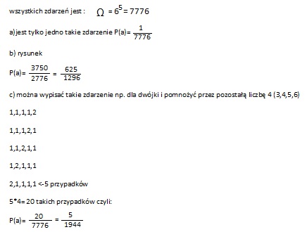 wszystkich zdarzeń jest 6^5=7776