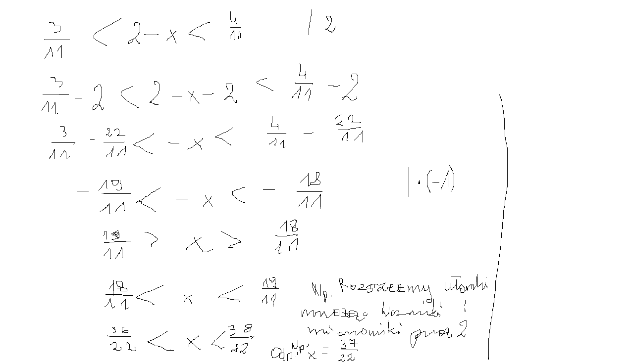 3/11 < 2-x < 4/11,