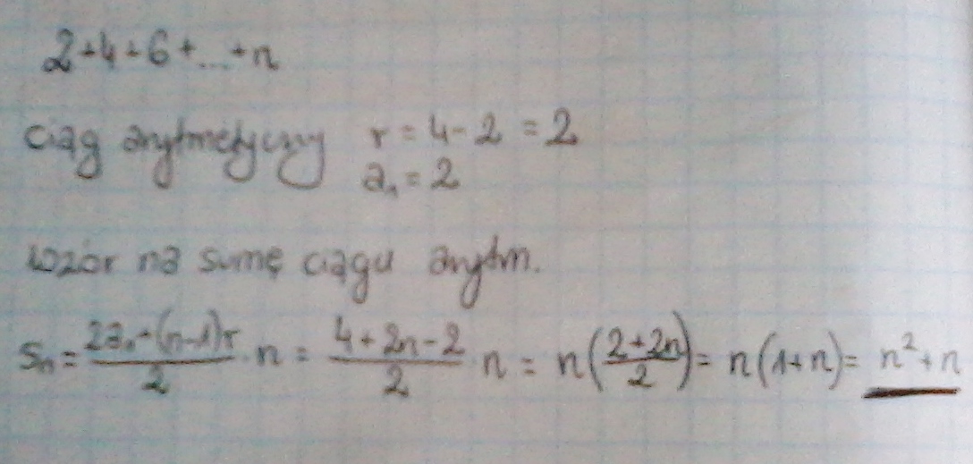 Suma 2+4+6+...+n wynosi???