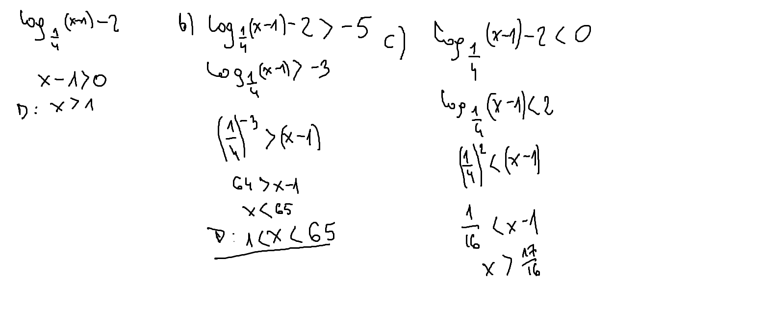 Dana jest funkcja logarytmiczna o wzorze f(x)=log1/4(x-1)-2.