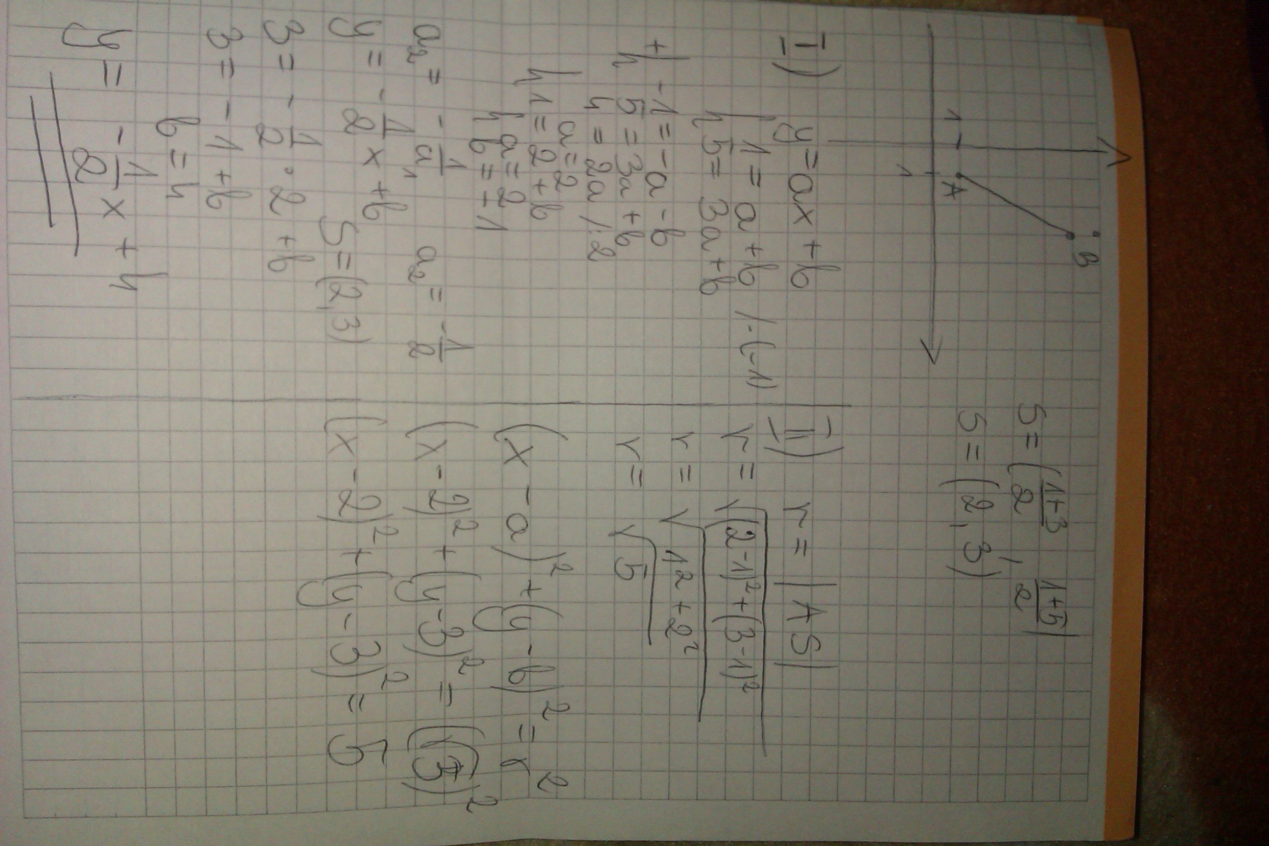 II) -promień, czyli połowa średnicy to odcinek AS, obliczamy ze wzoru na długość odcinka długość promienia