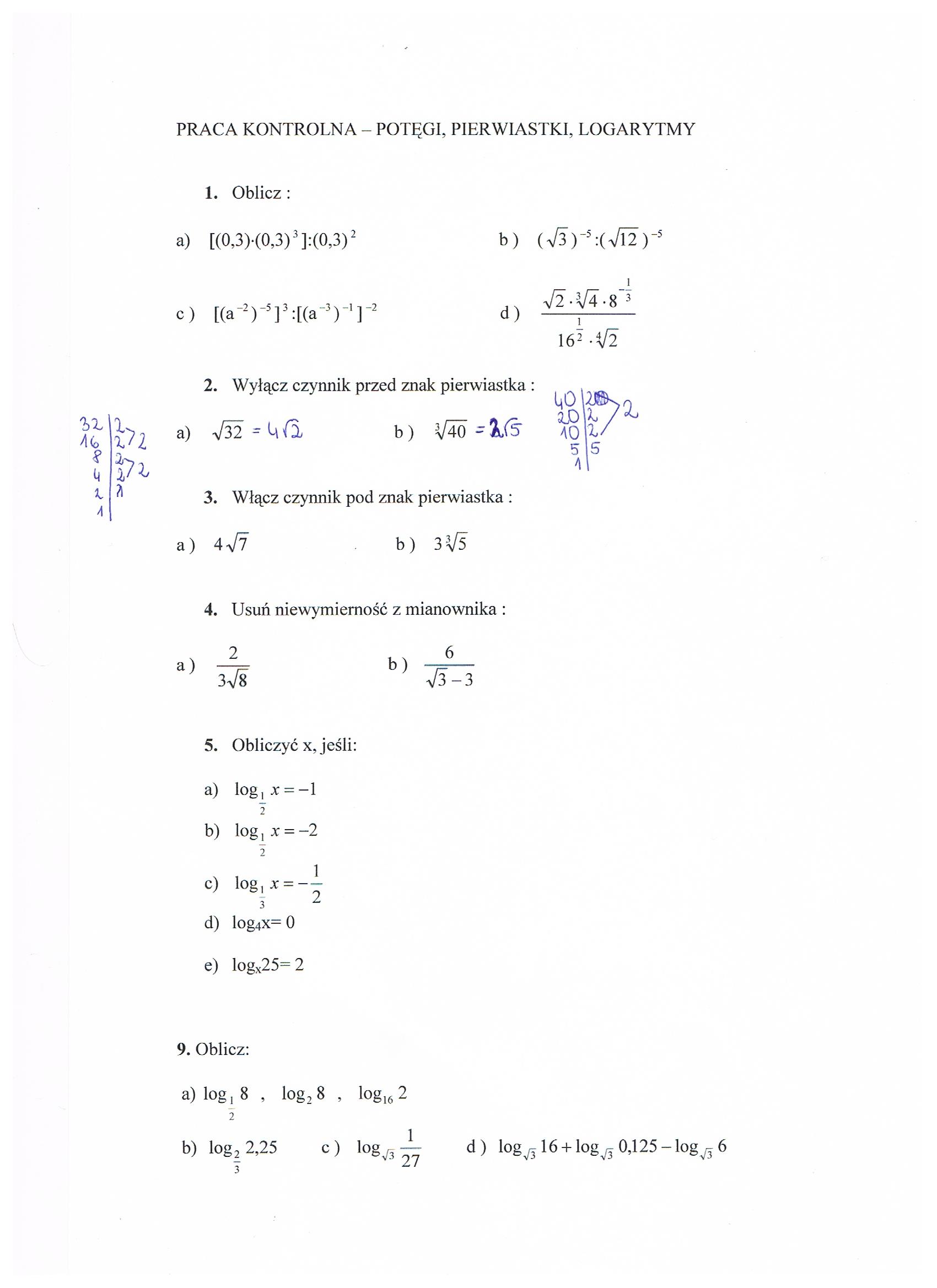 matematyka zadania logarytmy i pierwiastki
