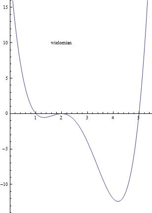 Rysunek dla tego wielomianu znajduje się w załączniku, odczytujemy z niego, że: