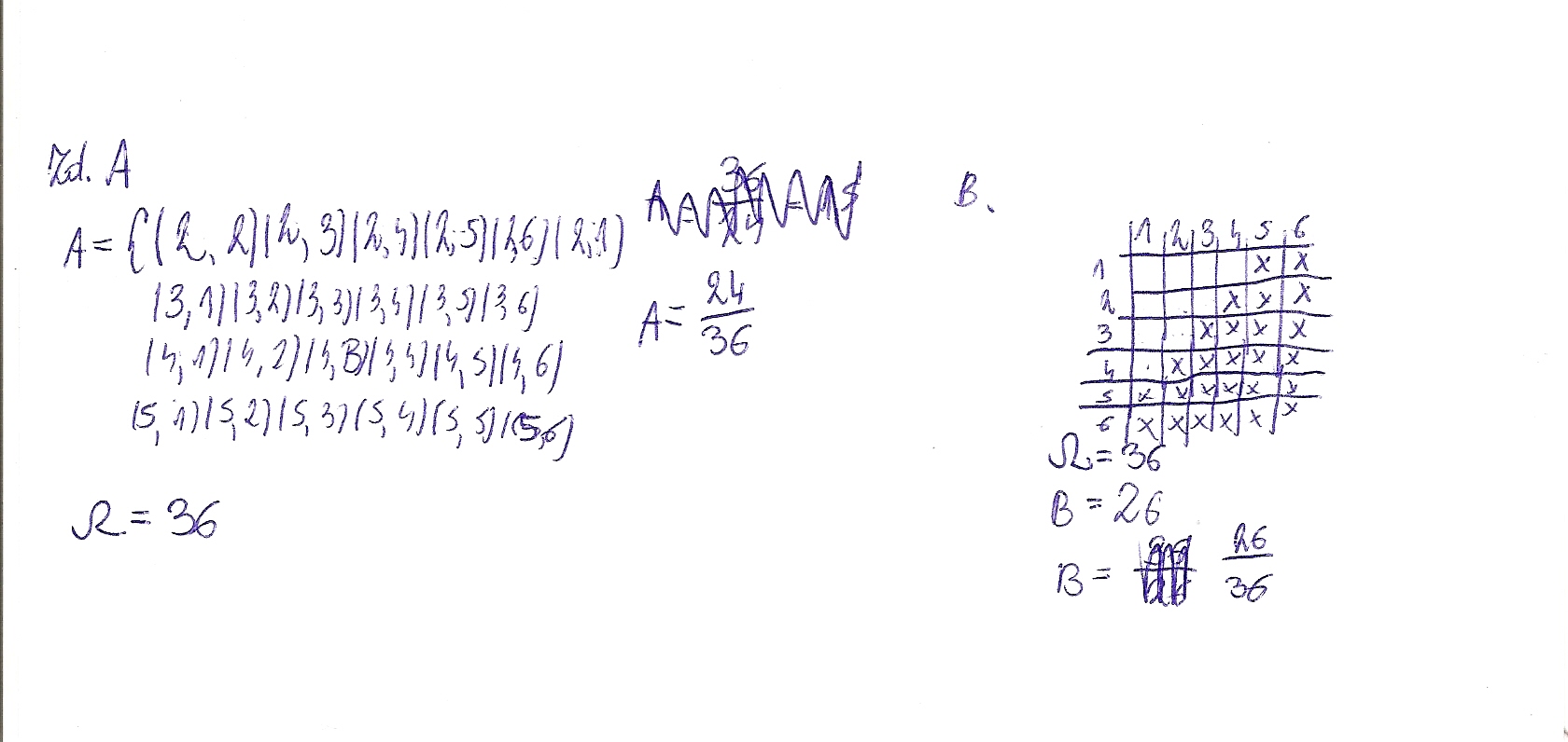 A-na pierwszej kostce wypadły co najmniej 2 oczka