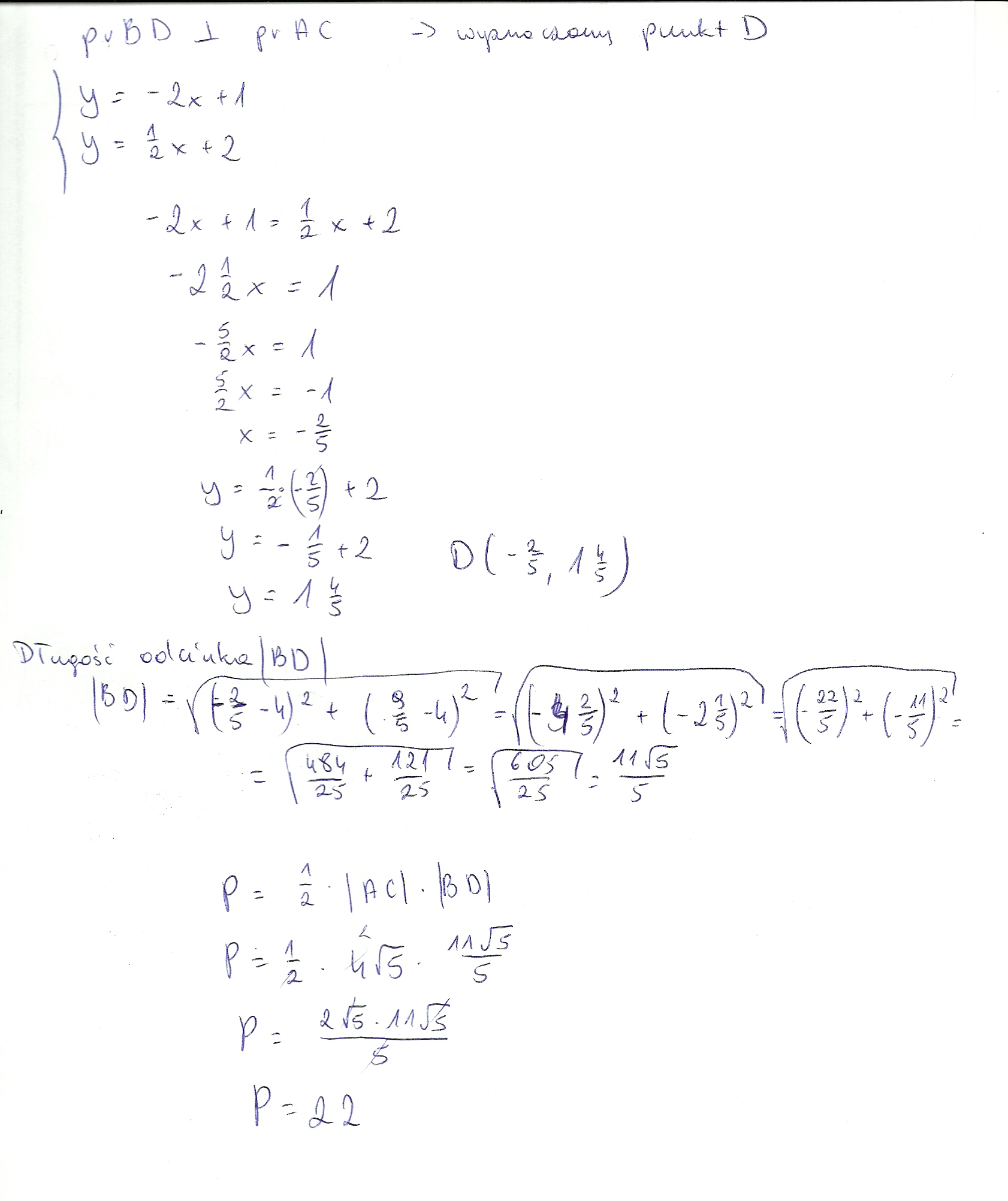 1zad.1.oblicz pole i obwód trójkąta o wierzchołkach A=(-1;3),B=(4;4),C=(3;-5)