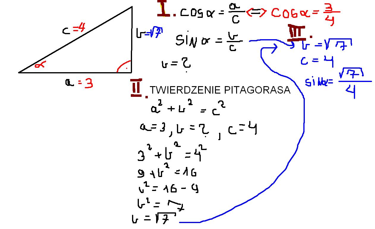 w II za pomocą twierdzenia Pitagorasa obliczamy B