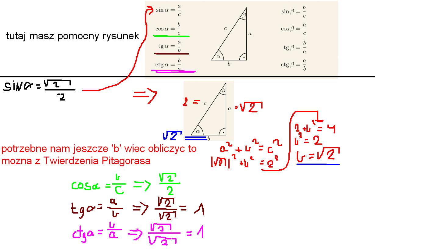 - więc tu juz można podstawić obliczony cosinus i dany sinus.
